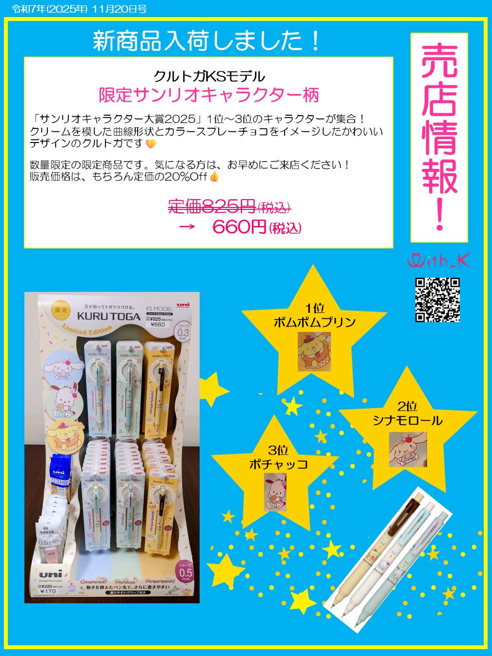 「サンリオキャラクター大賞2025」の1位~3位のキャラクターがかわいいクルトガになりました!