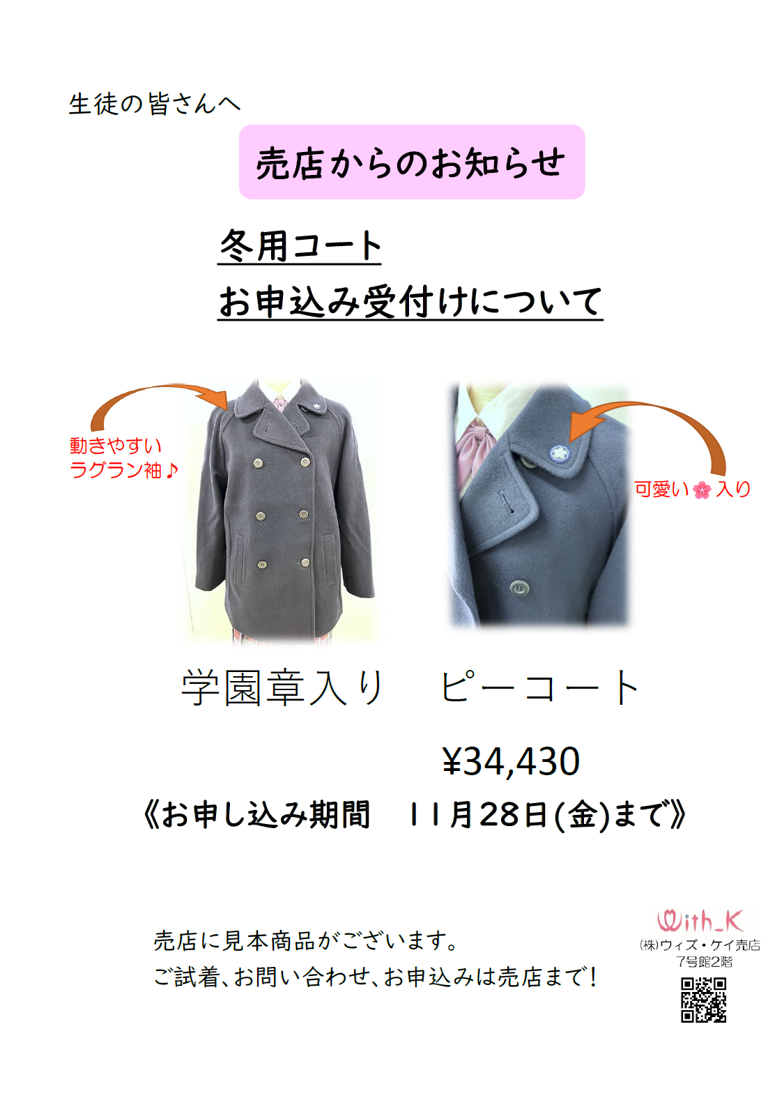 ピーコート販売のお知らせ🍃