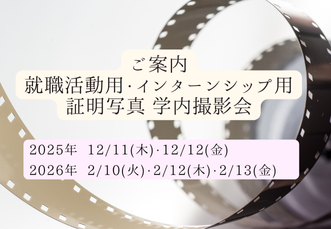 就活用証明写真 学内撮影会開催のご案内(2025年12月・2026年2月 )